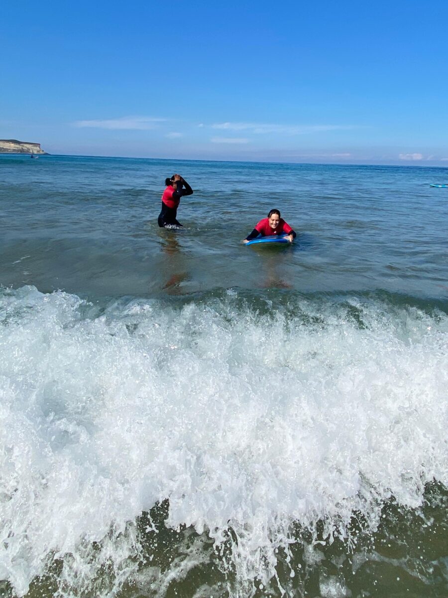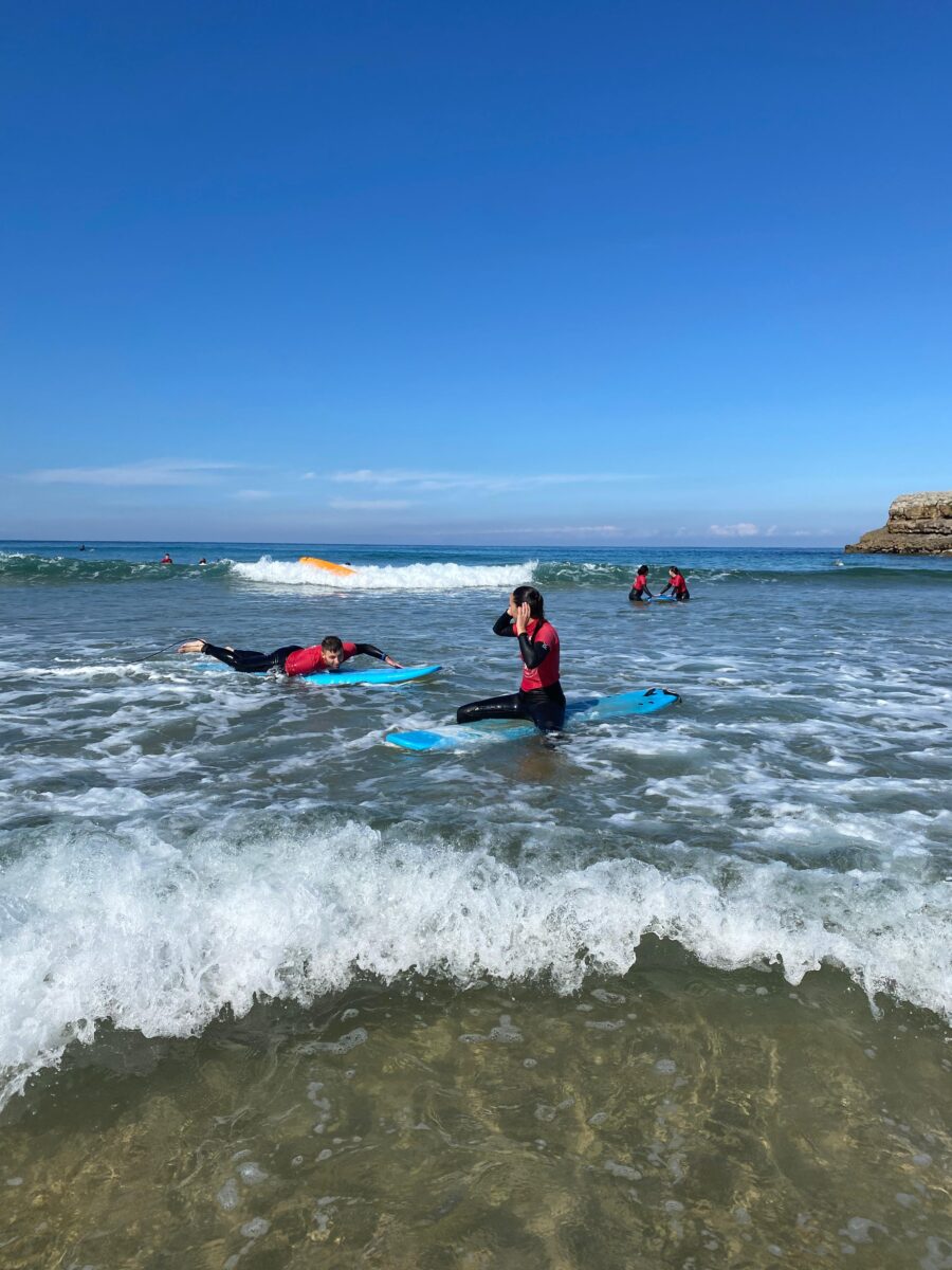 La actividad tuvo lugar en la playa de Los Locos, donde el grupo de estudiantes pudo participar en una emocionante sesión de surf, combinando deporte, naturaleza y compañerismo. El día acompañó con un espléndido sol y un ambiente inmejorable, lo que contribuyó a crear un clima perfecto para disfrutar y aprender fuera del aula.